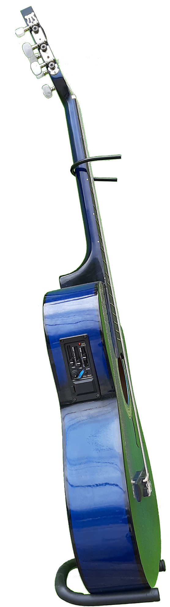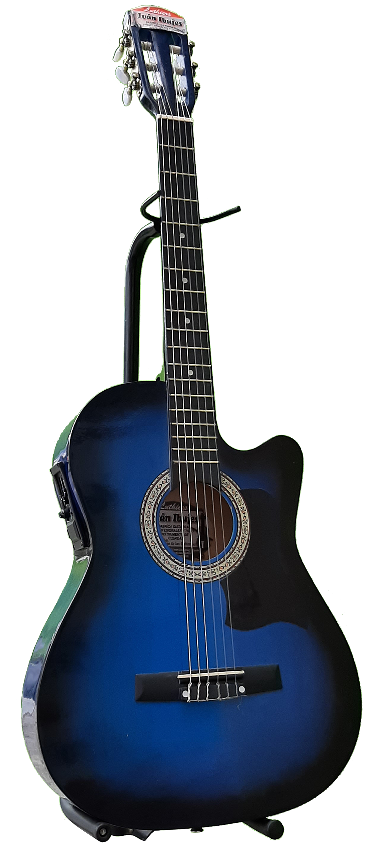 Guitarra electro acústica con codo tipo requinto color azul con ecualizador activo (Lleva batería).